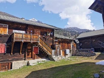 After a short descent, you reach Finnen. This is a pre-Alpine area of Eggerberg and has been documented since 1275. Hike to the front of the cross and gallows and take time for a break with views of the Rhone valley and the Mischabel massif.