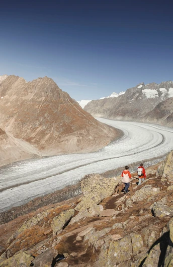 The view at Alte Stafel is considered one of the most beautiful on the Aletsch Glacier; plan a short break here to enjoy the panorama.