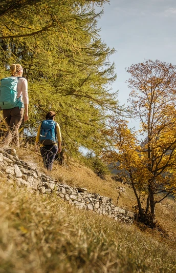 The circular hike starts in Simplon Dorf and leads along the Chrummbach to the opposite "Hittuwald". Here you are surrounded by larches up to 850 years old. In autumn, the larches show yellow-golden foliage. The hiking trail leads uphill through the larch forest. At around 2,000 to 2,200 meters in altitude, a wonderful view of Simplon Dorf and the surroundings awaits you. From here the path continues to "Hohmatta" and finally via Stockalperweg back to Simplon Dorf. The breathtaking views and the open larch forest make this circular hike unique.
