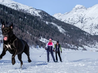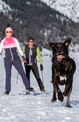 On the Loipe Goms there is also a special cross-country skiing experience with the four-legged companion. Especially for dogs and their cross-country enthusiastic mistresses and masters a special dog trail of four kilometres length was created between Oberwald and Obergesteln. Enjoy the vastness of the Obergoms with your four-legged friend on the specially designated round track.