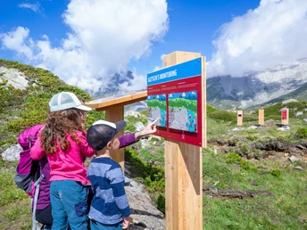 The Moosfluh glacier railway from the Riederalp takes you to the ridge, from where you hike westwards to the start of the themed trail. The circular route deals with the effects of global warming and glacier melting at the Aletsch Glacier. Children can approach the topics playfully with the glacier flea "Gletschi".