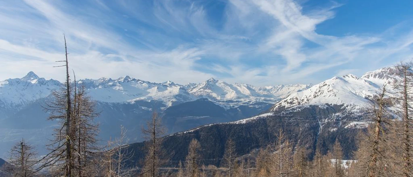 After nearly 300 meters of elevation among these old giants, you reach a small hill north of the avalanche protection, the Hohliecht. The panorama of Bortelhorn, Aletschhorn, Bietschhorn, and the other peaks of the Bernese Alps is magnificent.