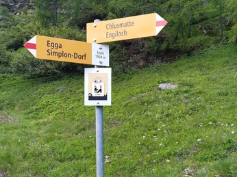 Der Punkt "d'Stelli" befindet sich am Wegweiser bei den Hütten in der Stelli hoch über dem Weiler Maschihüs.