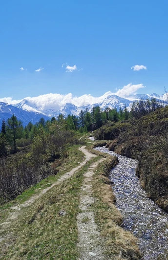 De la station supérieure, on atteint l'alpage Bäll après une légère descente. De là, on traverse tranquillement des prairies alpines verdoyantes jusqu'à l'alpage de Nessel, puis on continue vers Birgisch. Tout au long du parcours, il vaut la peine de laisser son regard vagabonder et d'admirer le magnifique panorama.
