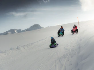 A Fiesch, prenez le téléférique jusqu'à Fiescheralp. De la station supérieure, marchez en direction de l'est durant environ 5 minutes jusqu'au départ de la piste de luge de Fiescheralp - Lax. Là, 11 km de pur plaisir luge s'offrent à vous! Le premier tronçon plutôt rapide mais sans danger est suivi d'une balade romantique à travers la forêt enneigée, qui se termine juste au-dessus de Lax. Depuis Lax, un bus navette ou le train Matterhorn Gotthard Bahn vous ramène à Fiesch.