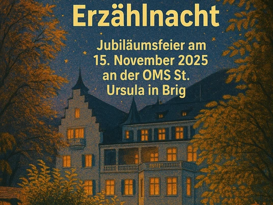 Die Jubiläumsfeier "30 Jahre Schweizer Erzählnacht" findet am 15.11.2025 von 15 Uhr bis 20 Uhr in der Räumlichkeiten der OMS St. Ursula in Brig statt. Es gibt interaktive Erlebniswelten und eine Tischmesse zu bestaunen. Die Eröffnung mit dem Festakt steigt um 17.15 Uhr. Die Vernissage des Buchs "Erzählnächte" von Kurt Schnidrig wird in die Jubiläumsfeier integriert. Der erste Teil des Buches ist dem "Lesen, Schreiben und Erzählen im Deutschwallis" während der letzten 30 Jahre gewidmet. Im zweiten Teil des Buches finden sich 30 ausgewählte Geschichten zu den vergangenen 30 Erzählnächten.
